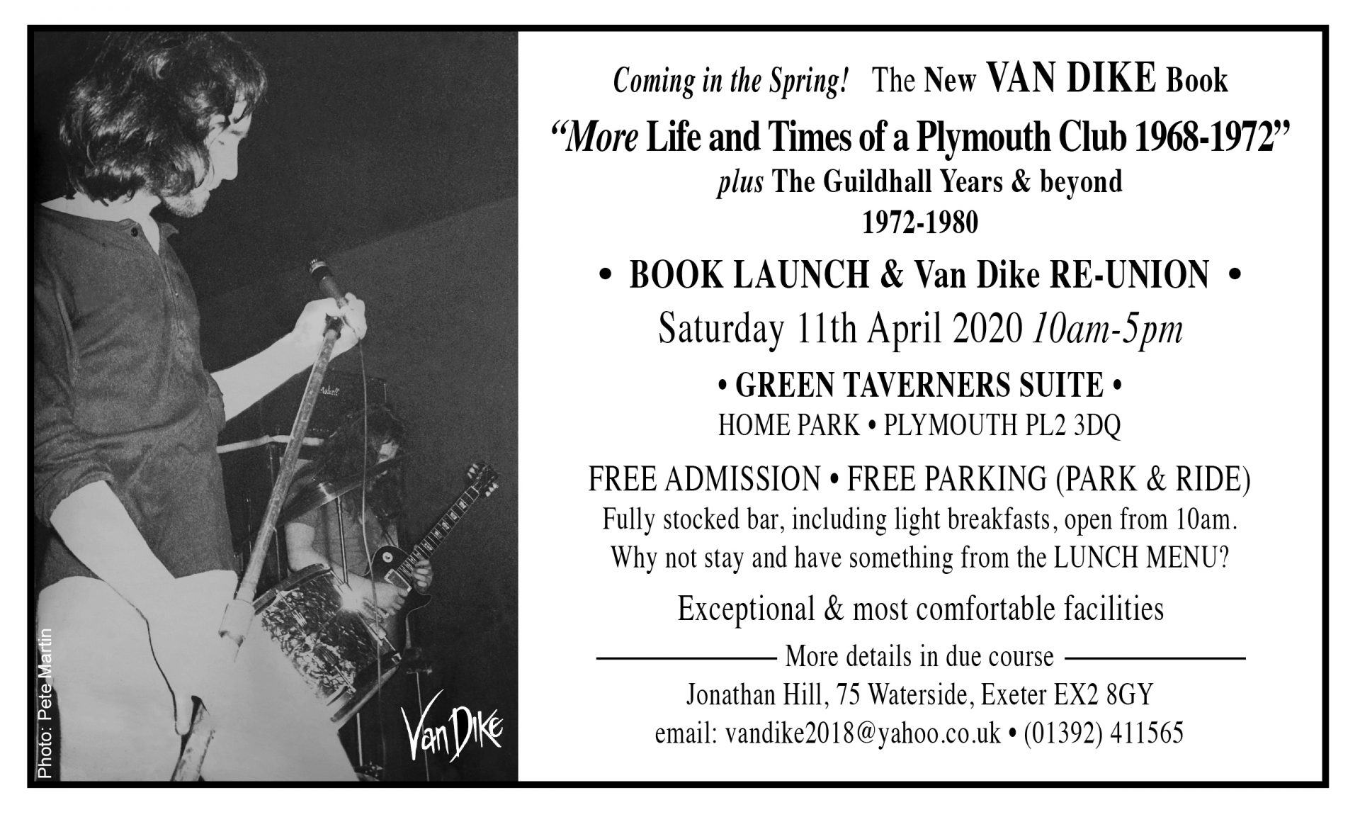 Author Jonathan Hill will be hosting the launch of his new Van Dike Book MkII and a Van Dike Reunion at the Green Taverners Suite on Saturday 11th April 2020. There will be a menu available on the day, and the bar will be open for the duration of the event. Guests do not need to purchase tickets, and can arrive any time between 10am – 5pm on the day.